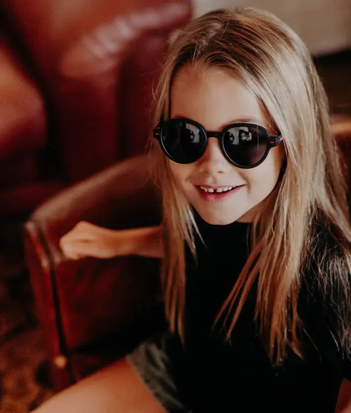 Unisex two-tone sunglasses for children from the Hello Hossy brand. Round glasses with a timeless style.