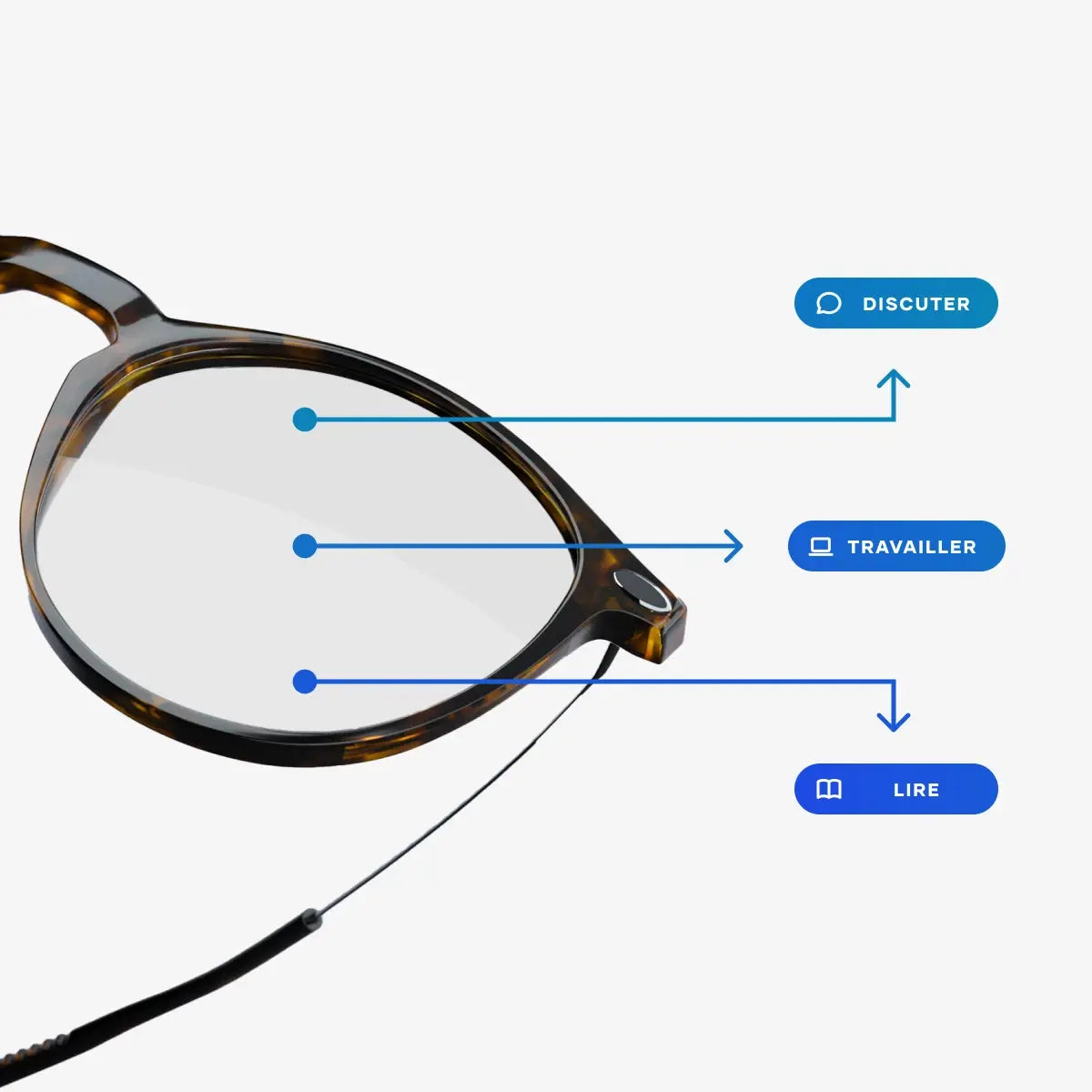 Adapting to multi-distances is much easier and quicker than with progressive glasses. We recommend that you wear them regularly to allow your eyes to get used to the correction transition. Start by using them for reading and close-up work.