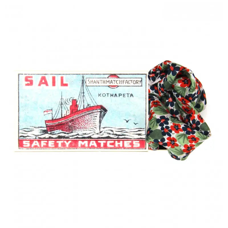 The Mini Foulard Capucine Marine is presented in a pretty box inspired by vintage matchboxes , making it a charming gift idea .