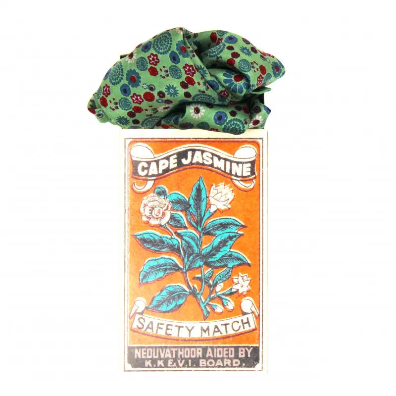 The Mini Hanami Khaki Scarf is presented in a pretty box inspired by vintage matchboxes , making it an original and elegant gift .