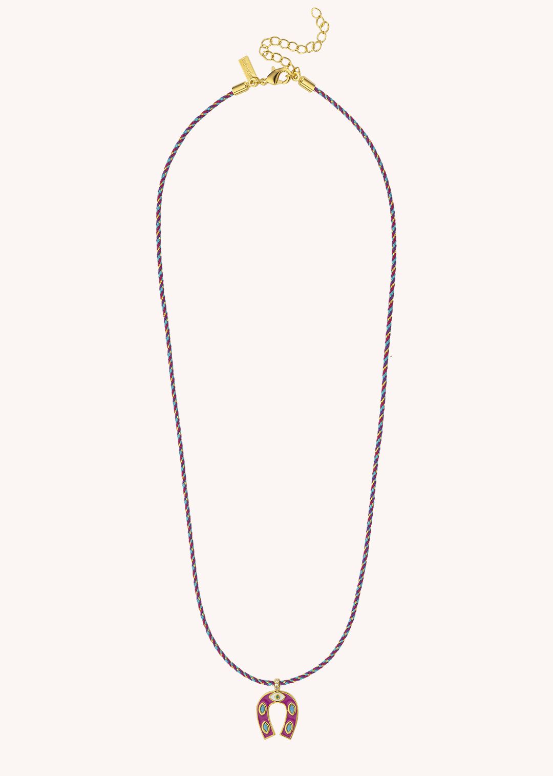 The MINI HORSESHOE necklace by MYA-BAY embodies the sunny, bold, and colorful spirit of the RODEO collection. Its horseshoe-shaped pendant, gilded with 24-carat recycled fine gold and enhanced with vibrant enamel, is worn not on a classic chain… but on a multicolored braided cord , for a bohemian and modern twist. A piece as stylish as it is a lucky charm to keep close to you, every day of summer.