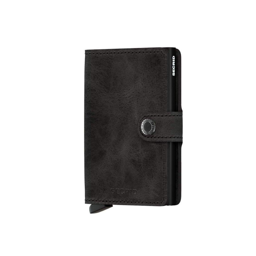 Cardprotector Secrid Vintage Black leather, 10 card capacity, RFID protection, bill compartment, elegant and robust design.