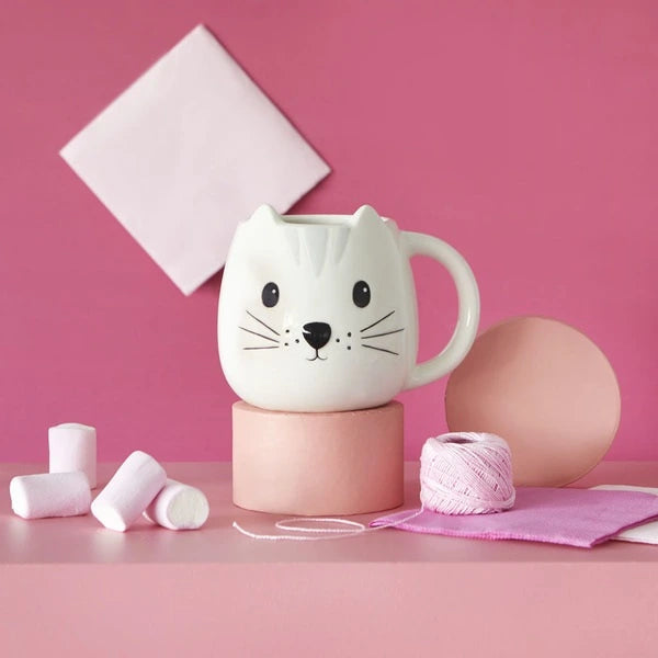 Warm up by drinking your tea or coffee (or whatever you want) in this large cat-shaped mug! 🐱