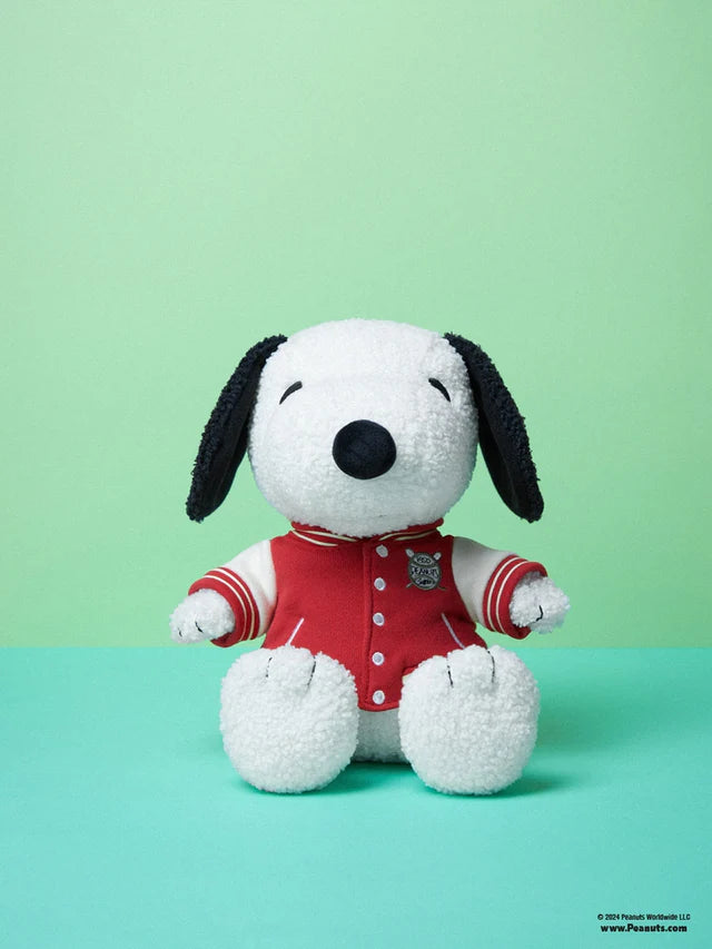 Snoopy pulls out all the stops with his American campus-style Varsity jacket. A collector's plush toy with a preppy style and crazy softness!