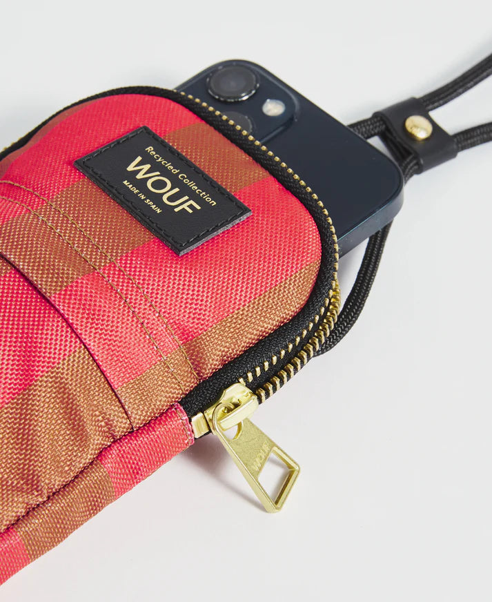 The beautiful phone pouch from the Daily Wouf collection. Made from 100% recycled fabrics from post-consumer plastic bottles. Featuring a water-repellent finish and an adjustable cord, this pouch will be your new essential.