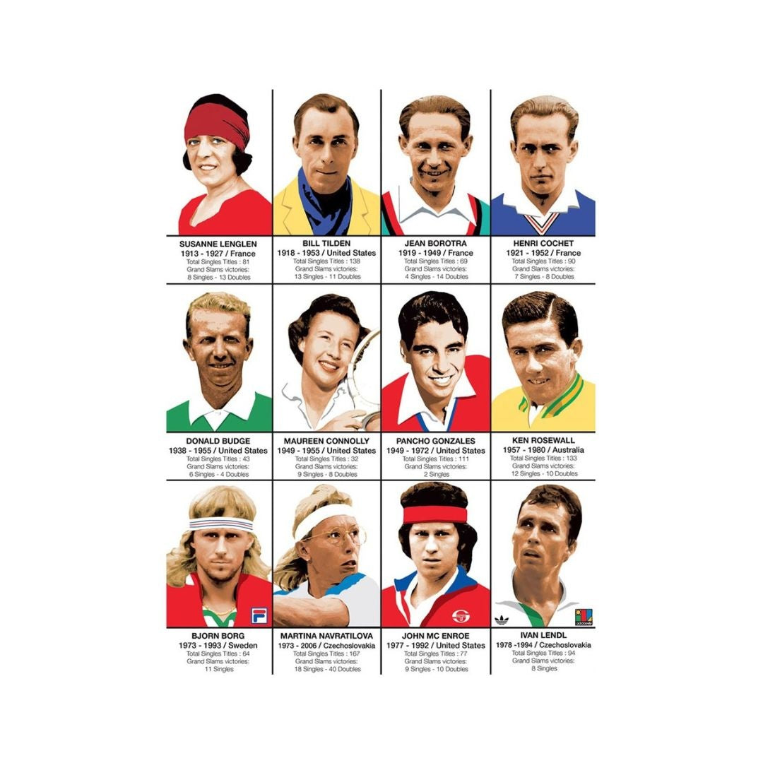 Find the tennis players who have made their mark in the biggest international tournaments with this large format poster.