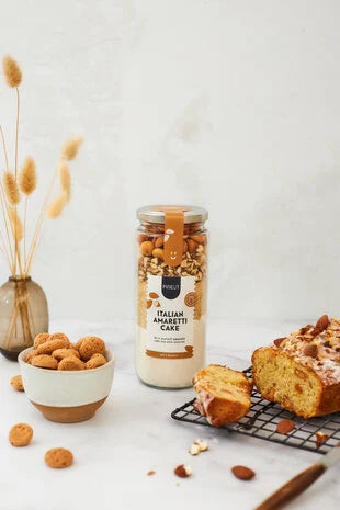 Discover a delicious treat with this Italian Amaretto Cake Mix. Easily make an almond cake with amaretti biscuits and almonds. Enjoy the subtle crunch of amaretti in every bite. No hassle, just pure flavor in every slice! Indulge in this indulgent mix.