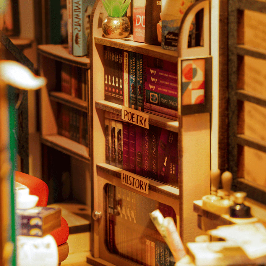 Assemble this Bookstore Book Nook kit and discover a world full of literary and retro charm.
