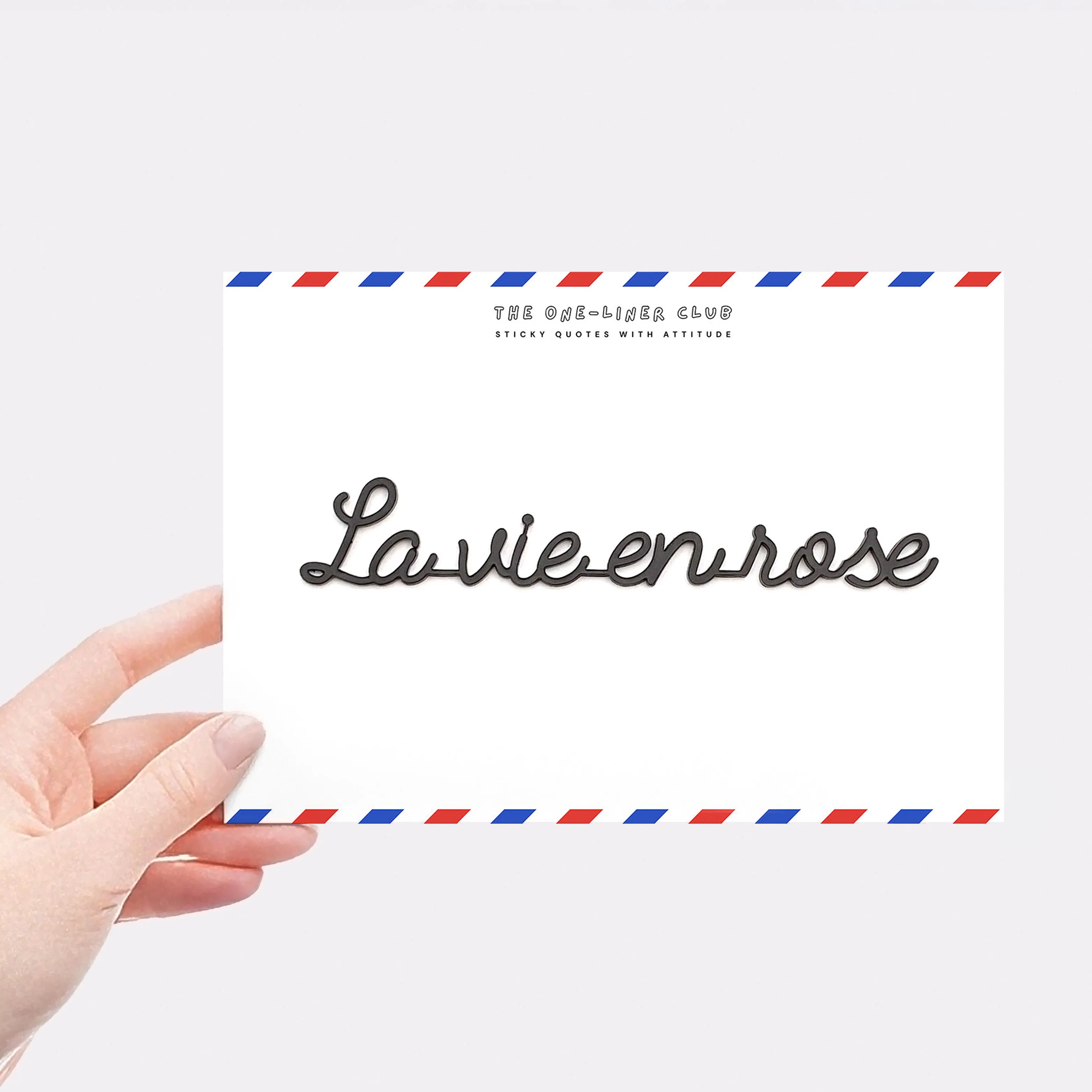 Invite poetry and optimism into your home with the “La Vie en Rose” wall quote from The One Liner Club . Elegant and inspiring, this iconic quote evokes the beauty of small moments and the art of seeing the bright side of life .
