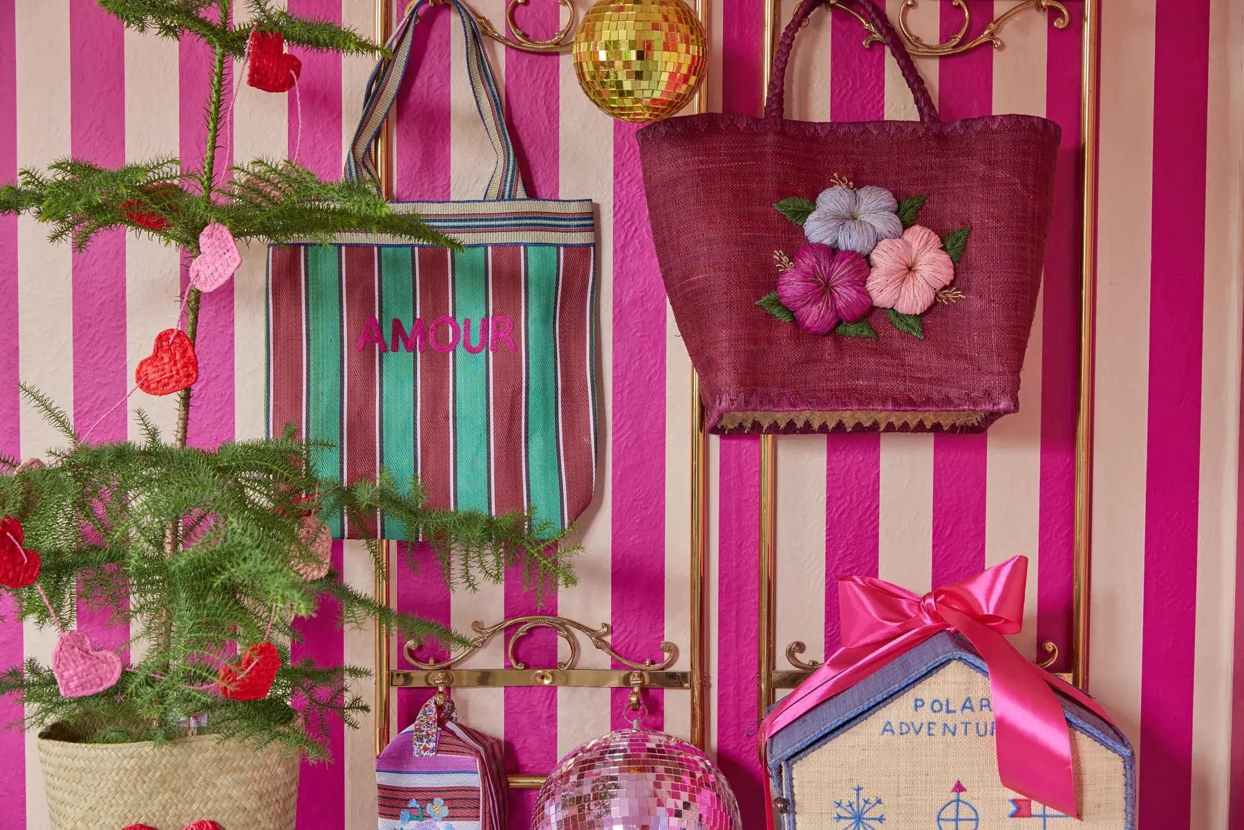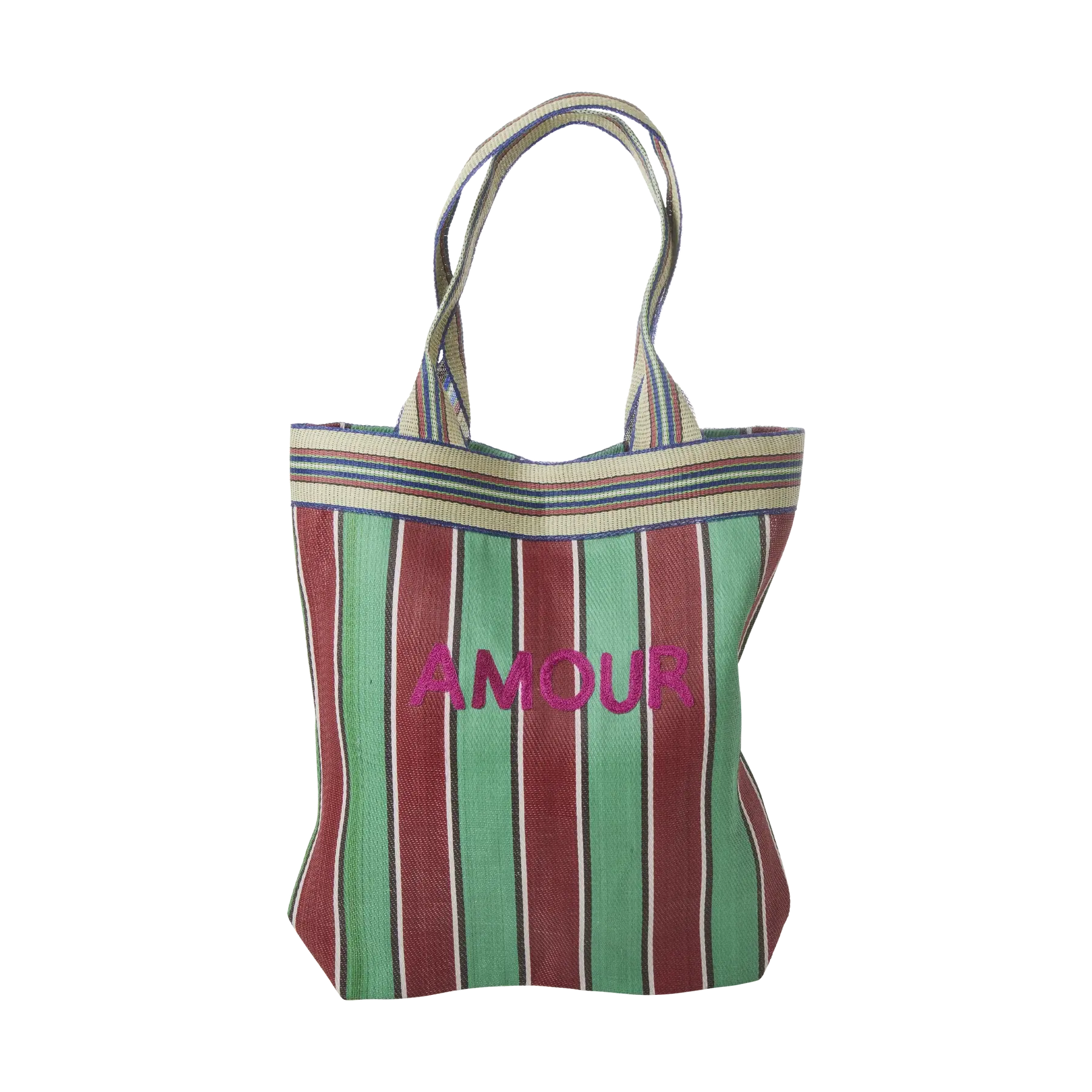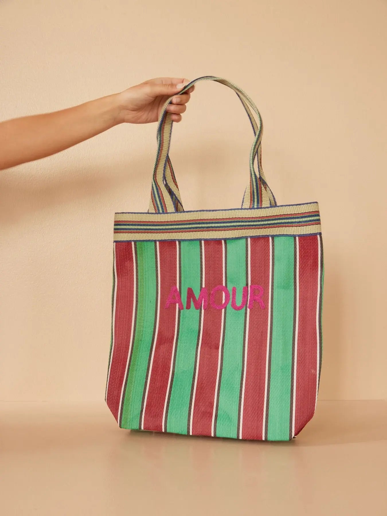 Recycled Plastic Shopping Bag in stripes with Amour embroidery
