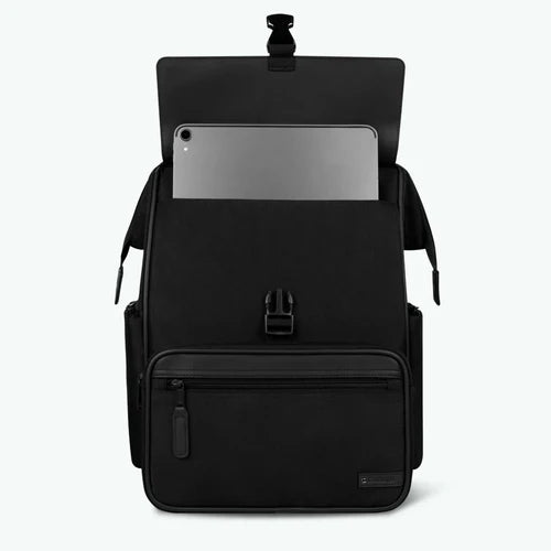 When it comes to comfort, the Bold pushes the boundaries: padded and breathable shoulder straps , a redesigned back panel and a luggage strap for effortless travel. Made from recycled, vegan and water-repellent materials , it comes with a lifetime warranty —a testament to its robustness and impeccable quality.