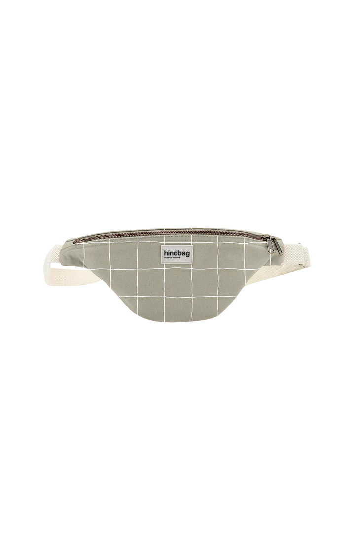 Olivia fanny pack – limited edition “Le Carnet”: thick organic cotton, clay green checkered design, adjustable handle and practical double zip.
