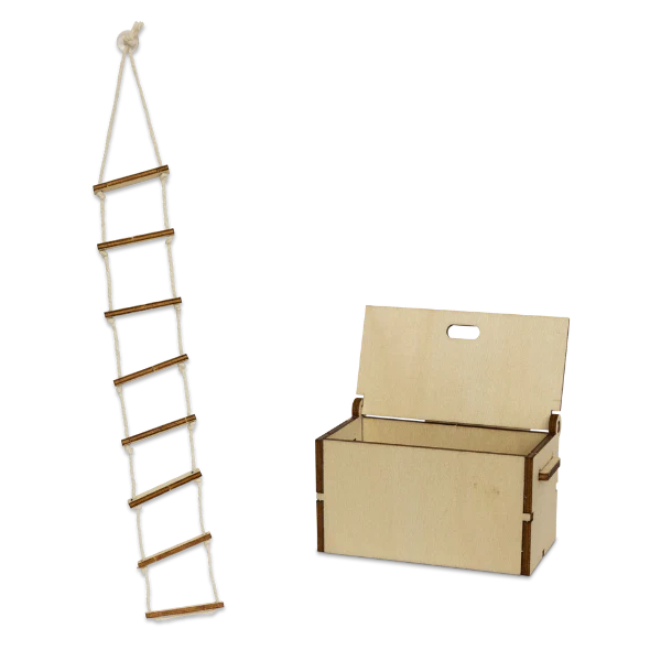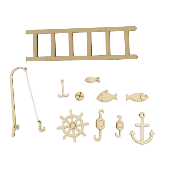 Furniture to assemble without glue (hammock, chest, stool, rudder, ladder, anchor, fish, etc.)