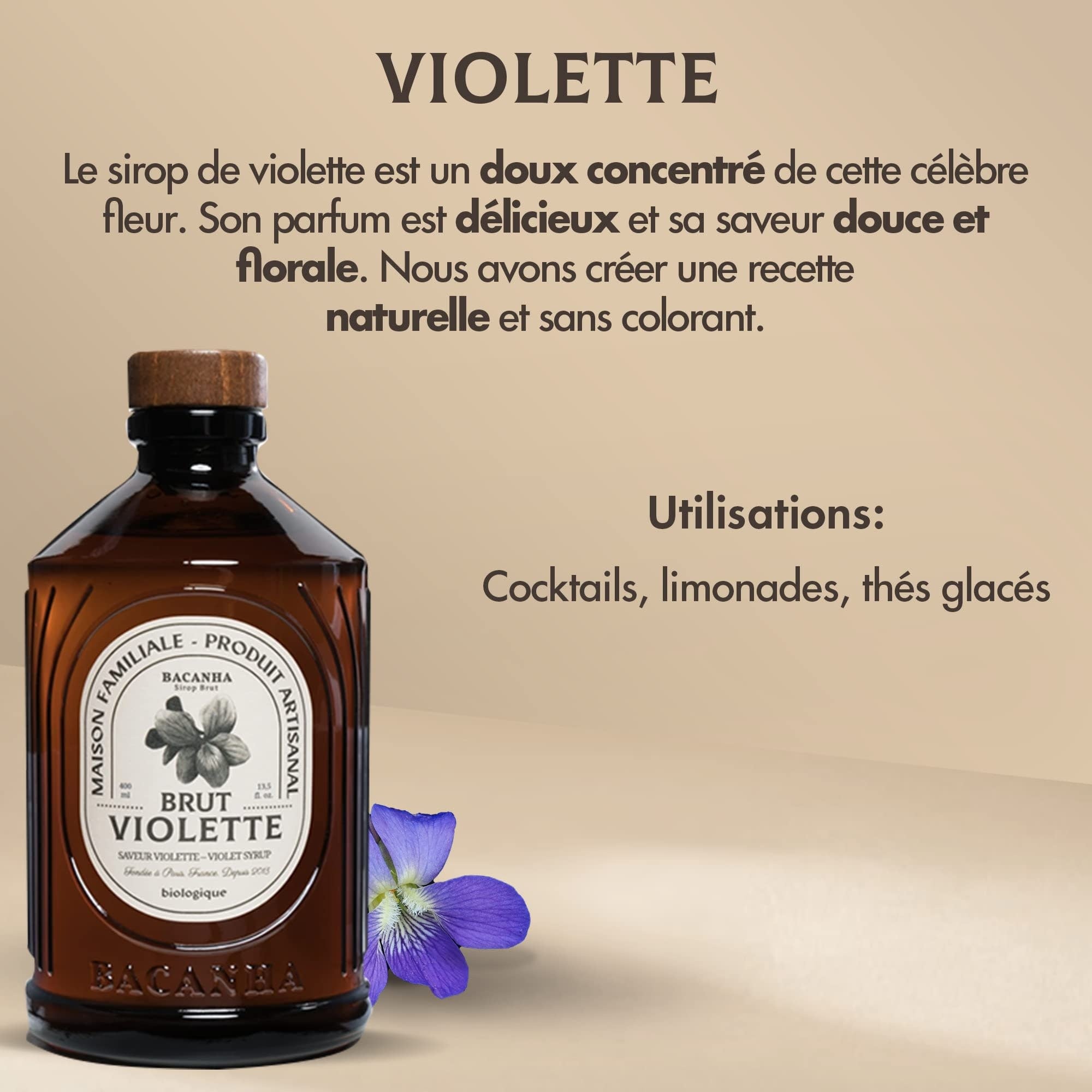 Bacanha raw violet syrup is a delicious concentrate of the violet flower. It is specially designed to deliver a sweet and floral flavor. A special feature of this raw syrup is that it is made without the addition of artificial colors.