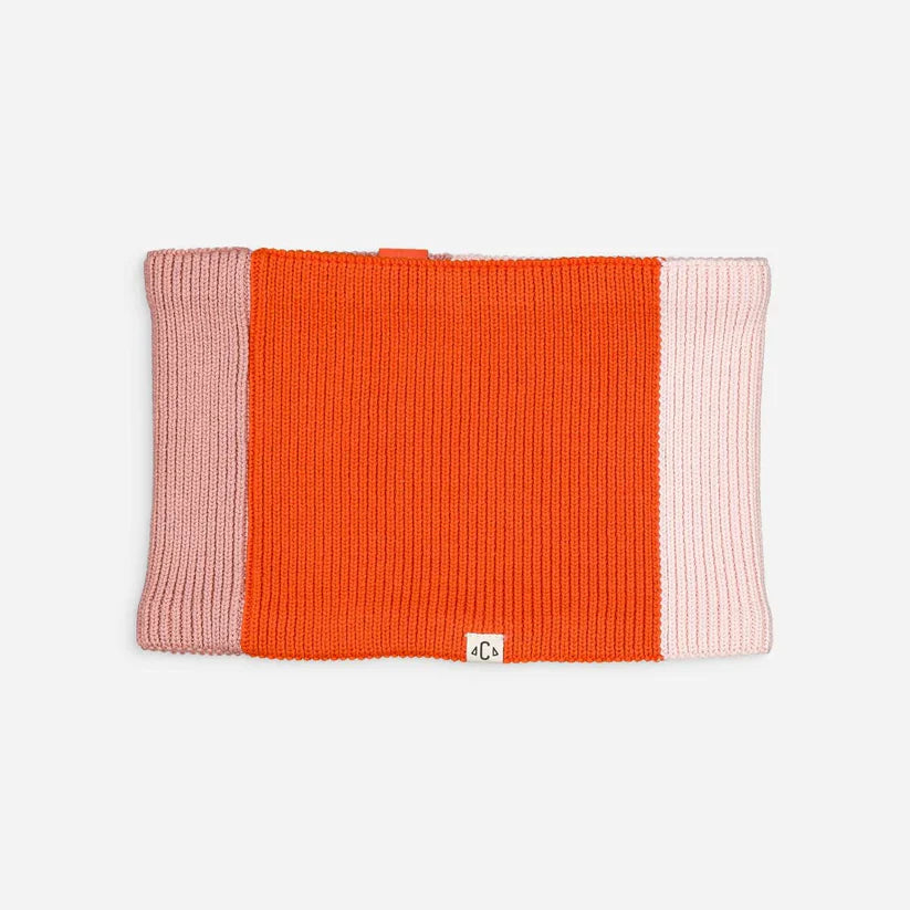 The Cosmic Girl tricolor snood mixes pink and orange hues for a look full of energy and good humor 🌸🧡. Lined with soft fleece, it keeps kids warm while matching Chamaye hats and caps for a friendly style.