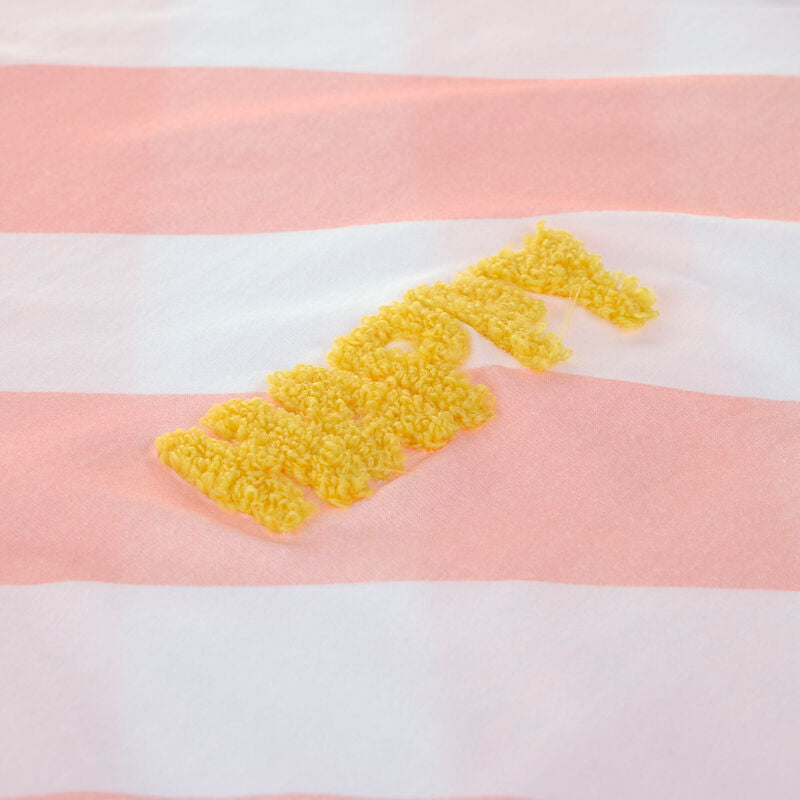 ✨ “HAPPY” embroidery in 3D terry cloth, for a feel-good look