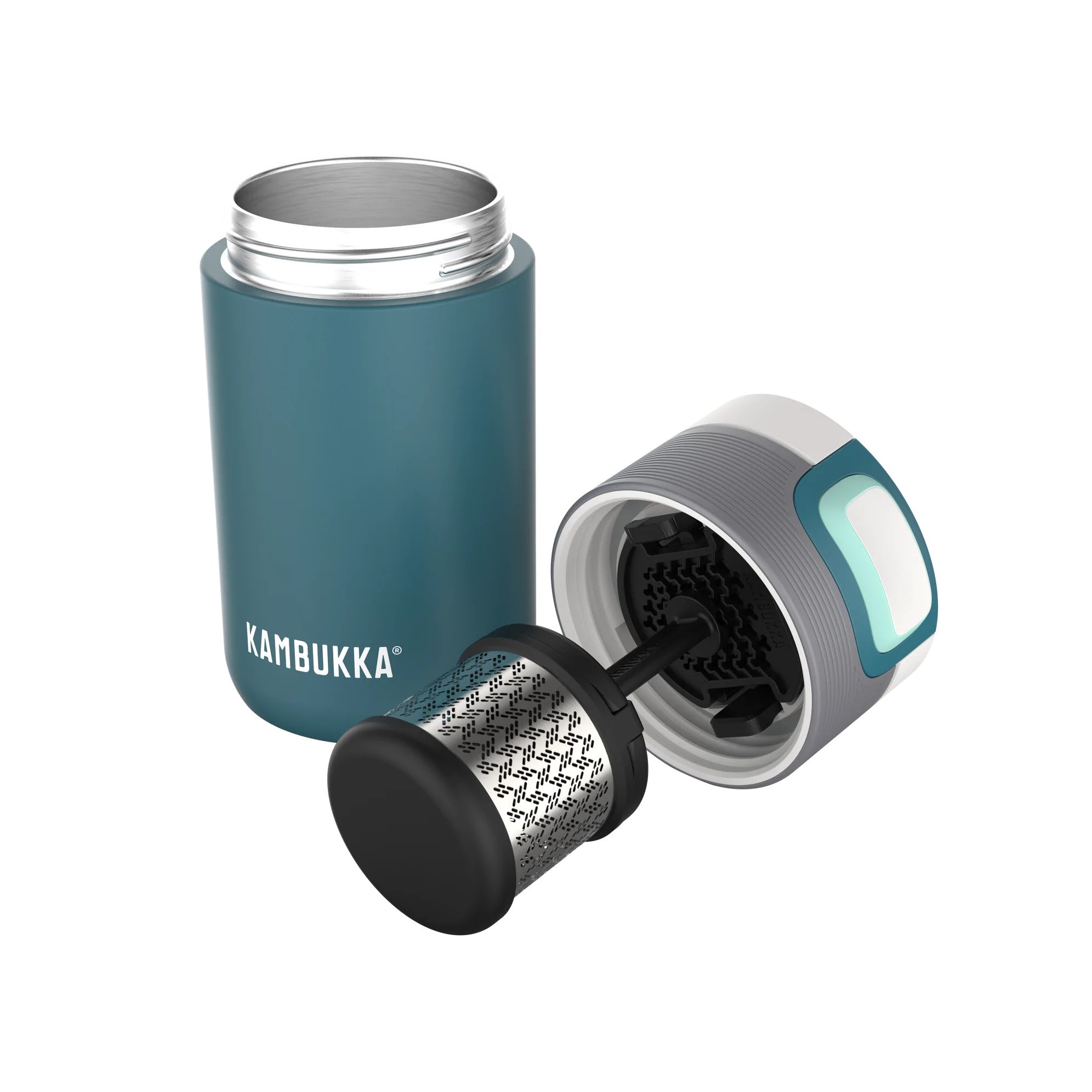 The Kambukka tea infuser features an instant cleaning mechanism with tea strainer. Ideal for carrying tea on the go. This accessory fits all Etna thermos flasks and can be attached with a single click. The infuser ensures that no leaves get into your tea and controls the strength of your drink.