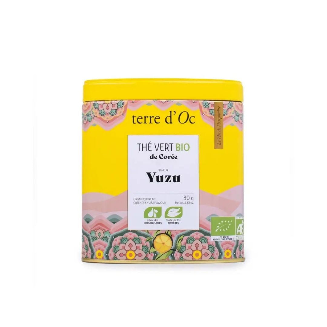 Daejak green tea is a Korean tea grown on Jeju Island. The tea leaves are cooked in a wok according to a traditional Korean recipe, which gives them a delicate and sweet aroma. This aroma blends perfectly with the exotic taste of yuzu.