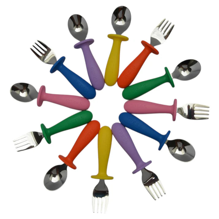Finally, children's cutlery that breaks the rules of beige childcare! This spoon and fork set focuses on color, fun, and freedom: soft shapes, a very supple material, and above all, ultra-popular shades that you won't see anywhere else. For joyful, playful meals, truly designed for kids ✨