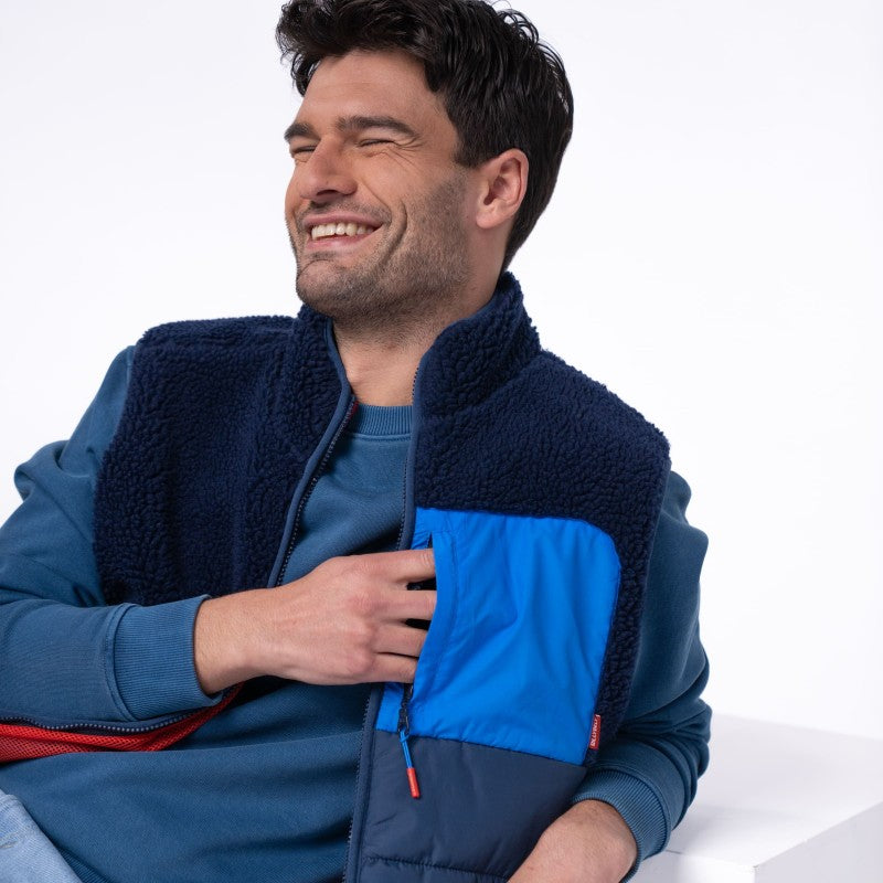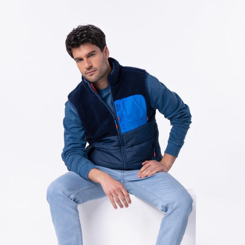 Sleeveless bi-material sherpa jacket - Navy Blue