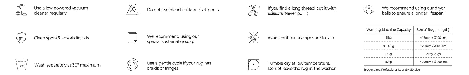 A Lorena Canals rug is for life. To make it last longer, we recommend that you follow these washing and care instructions: