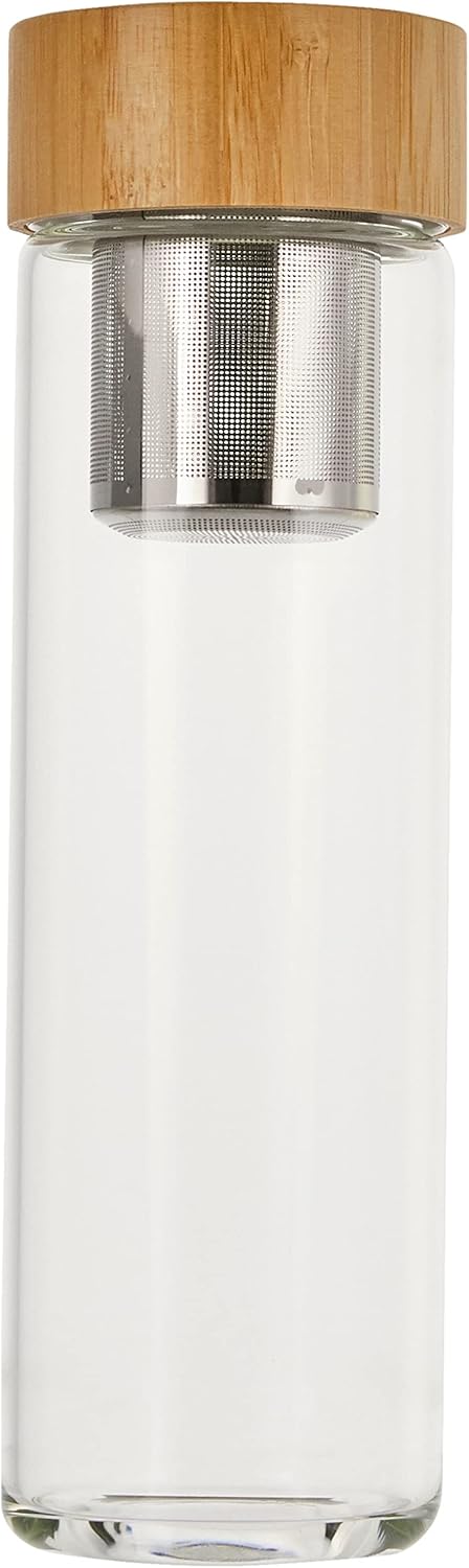 Meet your new favorite wellness ritual: the Zen Tea Infuser bottle combines sleek design and functionality. Made from durable borosilicate glass, it features a stainless steel infuser so you can enjoy your loose-leaf teas wherever you are. Its natural bamboo lid adds an elegant and soothing touch to your tea break. Take it anywhere... or enjoy it at home.