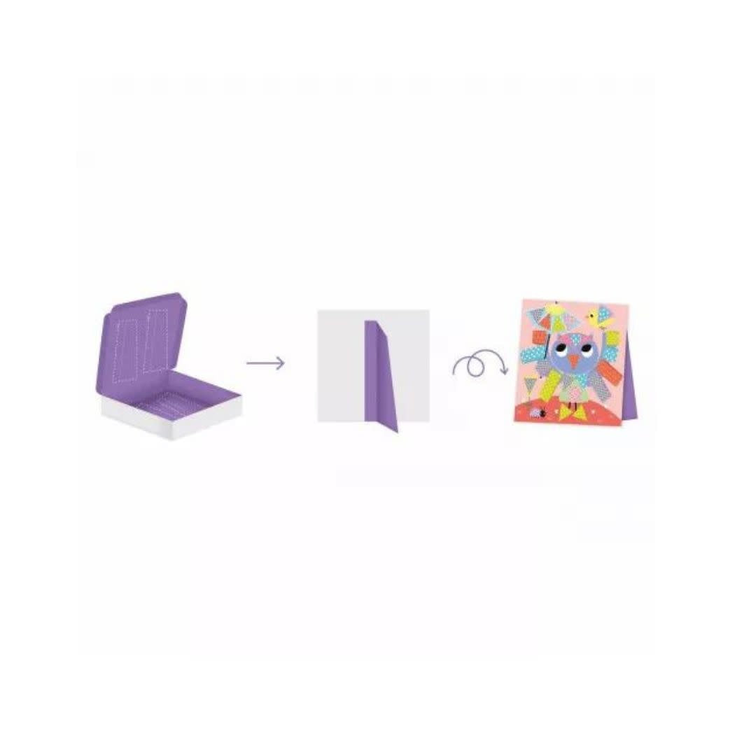 Doos waarmee je mooi gekleurd papier kunt knippen en lijmen en tekeningen kunt maken met de verkregen vormen. Praktisch, overal mee naartoe te nemen om kinderen op intelligente wijze te vermaken!