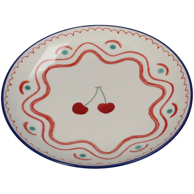 Het kersenmotief voegt vrolijkheid en originaliteit toe, waardoor elke maaltijd een plezierig en esthetisch aantrekkelijk moment wordt. Perfect voor dagelijkse maaltijden of als cadeau, dit bord maakt van elke portie een kleurrijke ervaring .