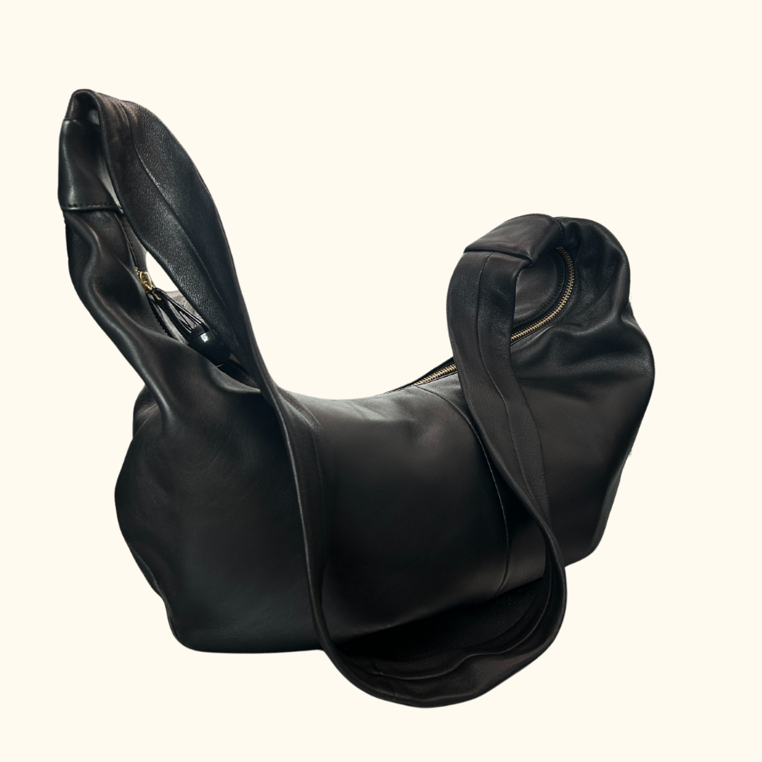 De Moon-tas is zwart en subtiel en past bij al uw wensen. Deze tas is handgemaakt in Marokko van natuurlijk gelooid leer, is gemakkelijk te dragen elke dag en complimenteert al uw outfits. Het ronde ontwerp zorgt voor die herkenbare twist.