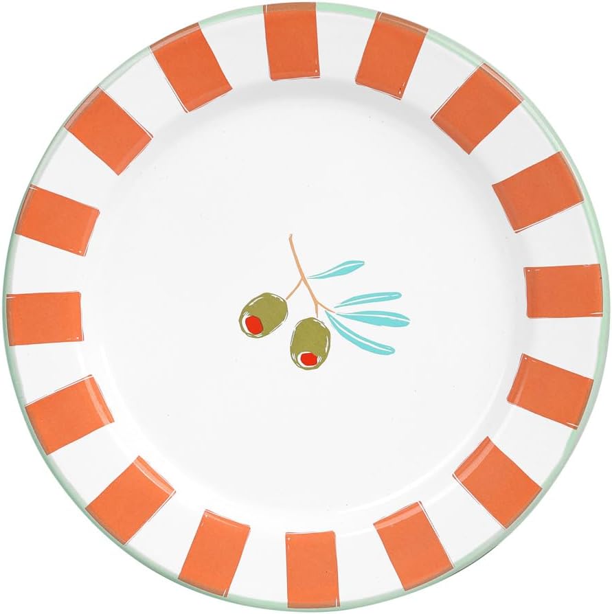 Ga voor het geëmailleerde Bon Appétit-bord van Talking Tables, een must-have voor een tafel met mediterrane accenten. Lichtgewicht, onbreekbaar en super stijlvol: perfect voor picknicks, maaltijden in de buitenlucht en aperitieven in de zon. Het olijfmotief geeft uw proeverijen een authentieke en warme toets.
