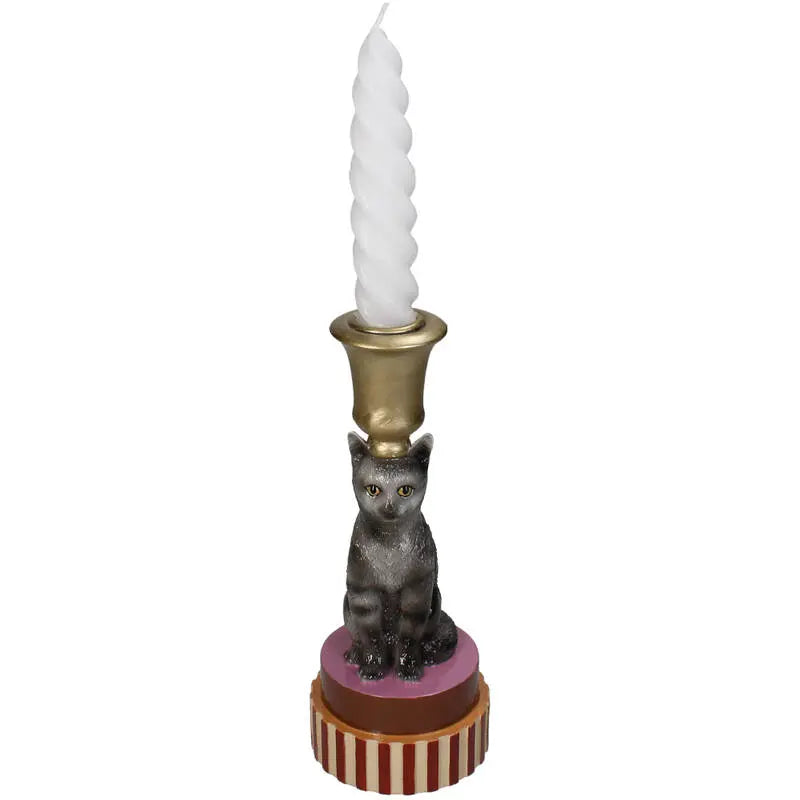 Kattenkaarsenhouder, polyhars, meerkleurig, 8x8x20cm
