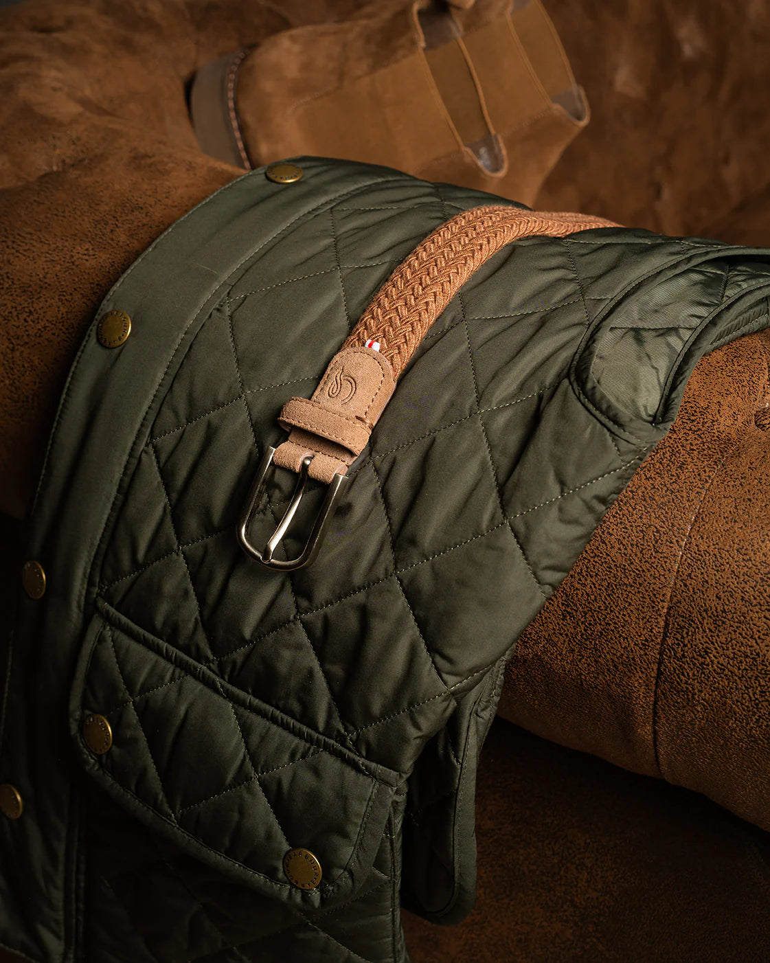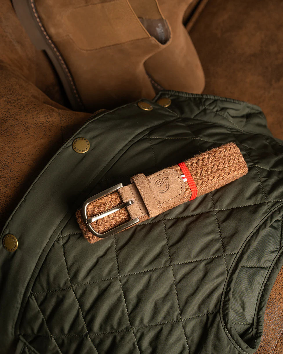 De Shetland-riem onderscheidt zich door zijn verfijnde vlechtwerk en zachte textuur, waardoor hij bij elk gebruik uitzonderlijk comfortabel is. De details van Spaans suède aan het uiteinde en de gesplus zorgen voor een elegante en verfijnde afwerking.