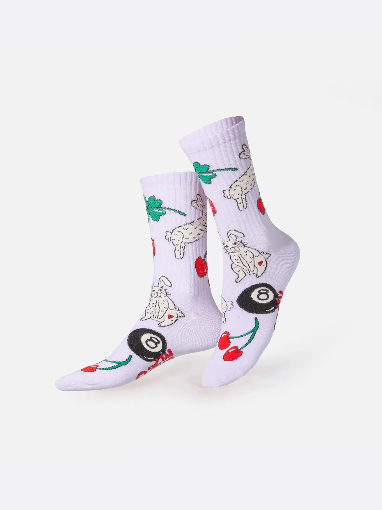 Neem overal een klein geluksbrengertje mee ✨. Deze roze sokken met konijntjes- en kersenprints combineren zachtheid, comfort en speelse stijl. Perfect voor wie graag een kawaii- en gelukstintje aan zijn dagelijks leven toevoegt.