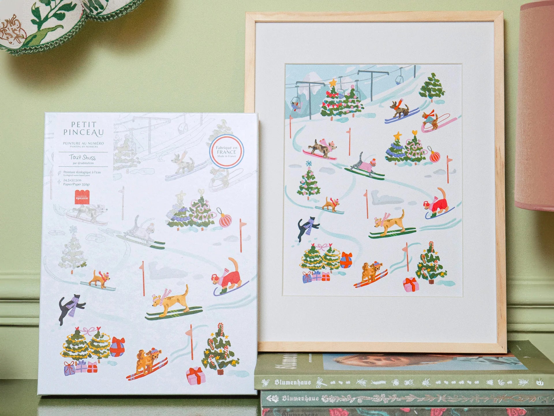 Laten we bergafwaarts gaan! Met de Petit Pinceau – Tout Shuss ⛷️ set neemt illustrator Sabina Fenn je mee naar een levendig wintertafereel waar kleine hondjes vrolijk de hellingen af racen. Gemaakt in Frankrijk met biologische materialen en veganistische penselen, is deze complete set ideaal voor een creatieve en leuke tijd.