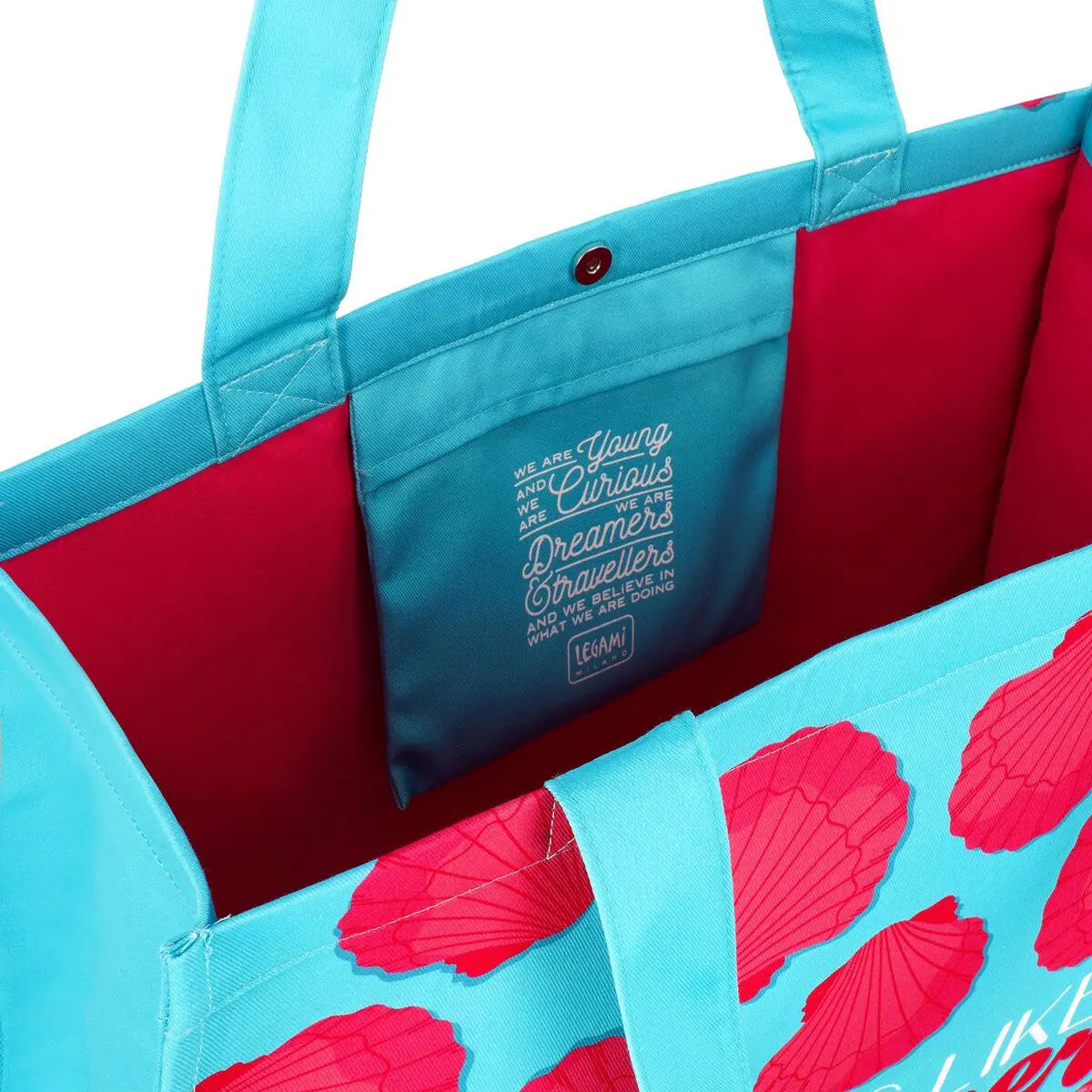 Voeg een vleugje stijl en functionaliteit toe aan uw zonnige dagen met de Legami "Seashell" strandtas.