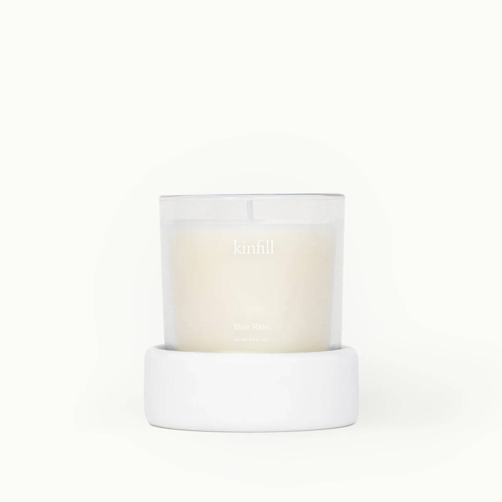 Verleng de verfrissende sfeer van Blue Rain in uw ruimte met deze elegante, duurzame kaars.