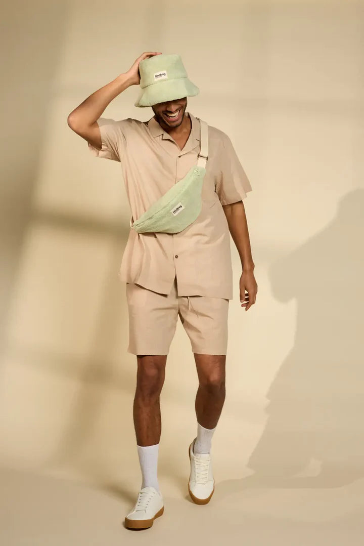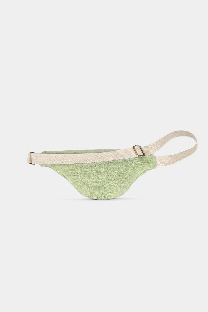 Het amandelgroene badstof heuptasje Olivia is het perfecte accessoire om stijl, functionaliteit en ethische toewijding in het dagelijks leven te combineren.
