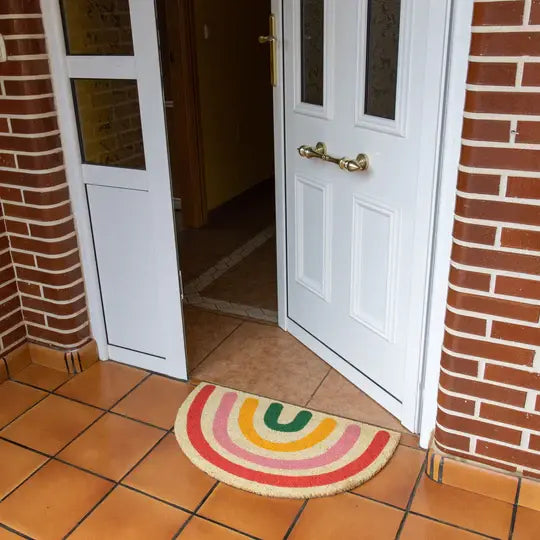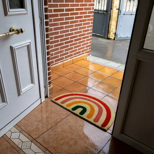 Een supermoderne en trendy deurmat om toe te voegen aan de entree van je huis. Deze regenboogdeurmat wil je meteen in je hal hebben.