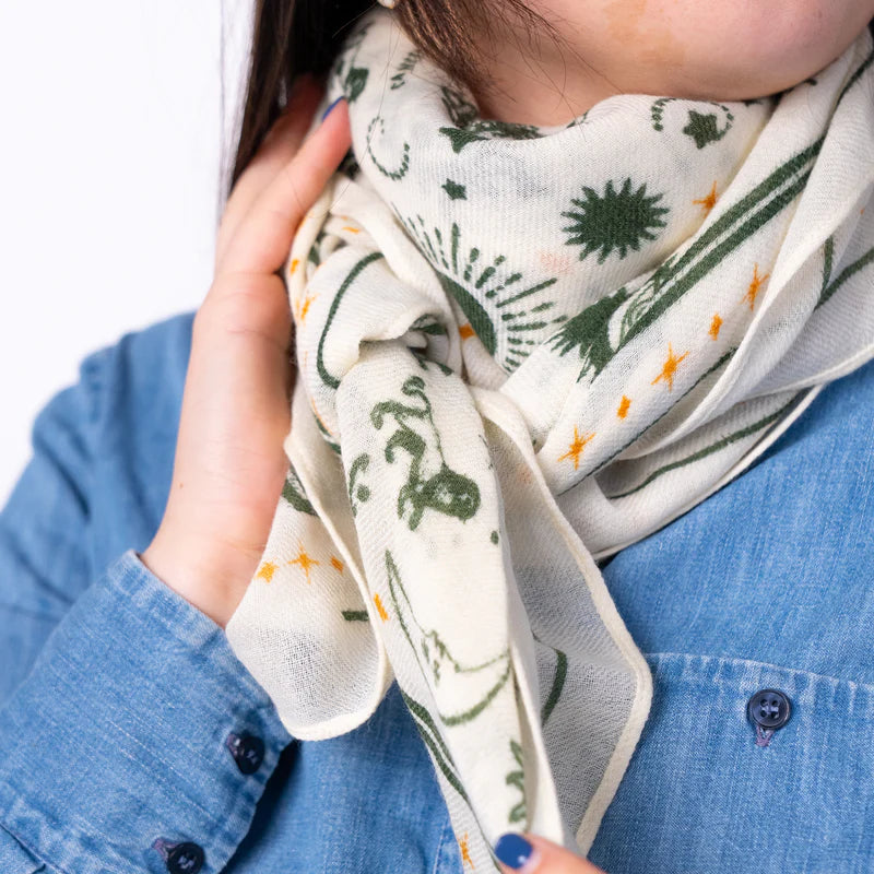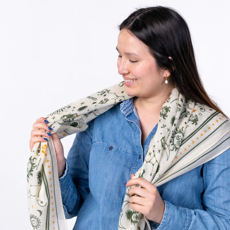 De subtiele astrale print voegt moderniteit en karakter toe aan je look, terwijl de OEKO-TEX-certificering een materiaal garandeert dat vrij is van schadelijke stoffen. Een chique en comfortabele accessoire die elke outfit verfraait.