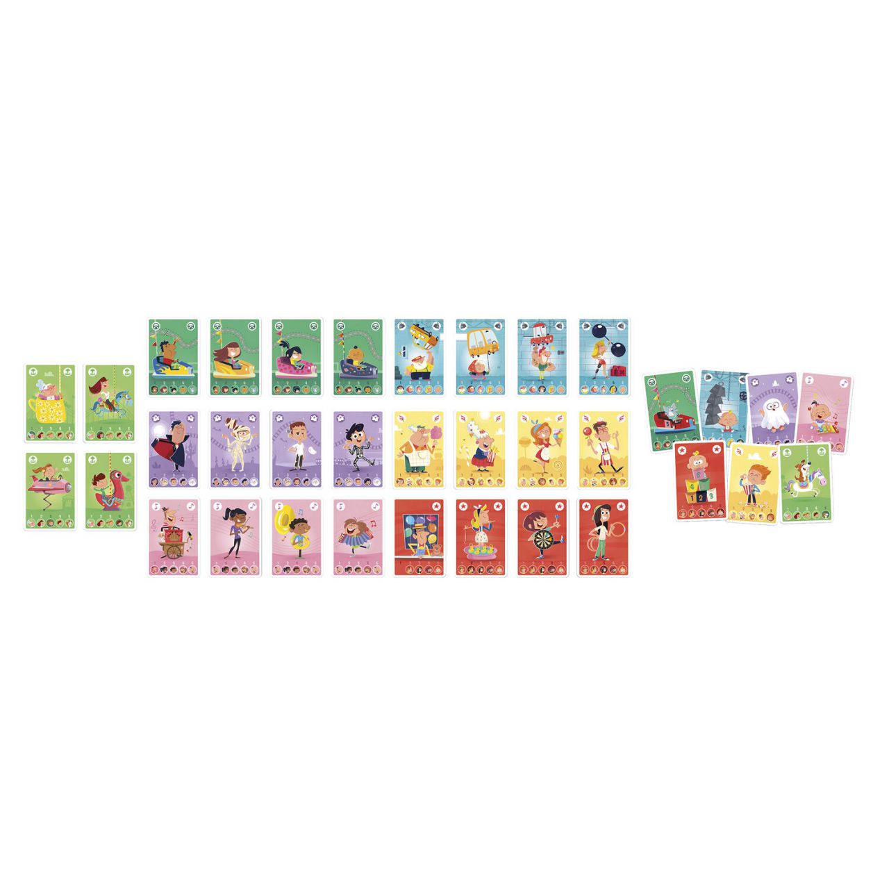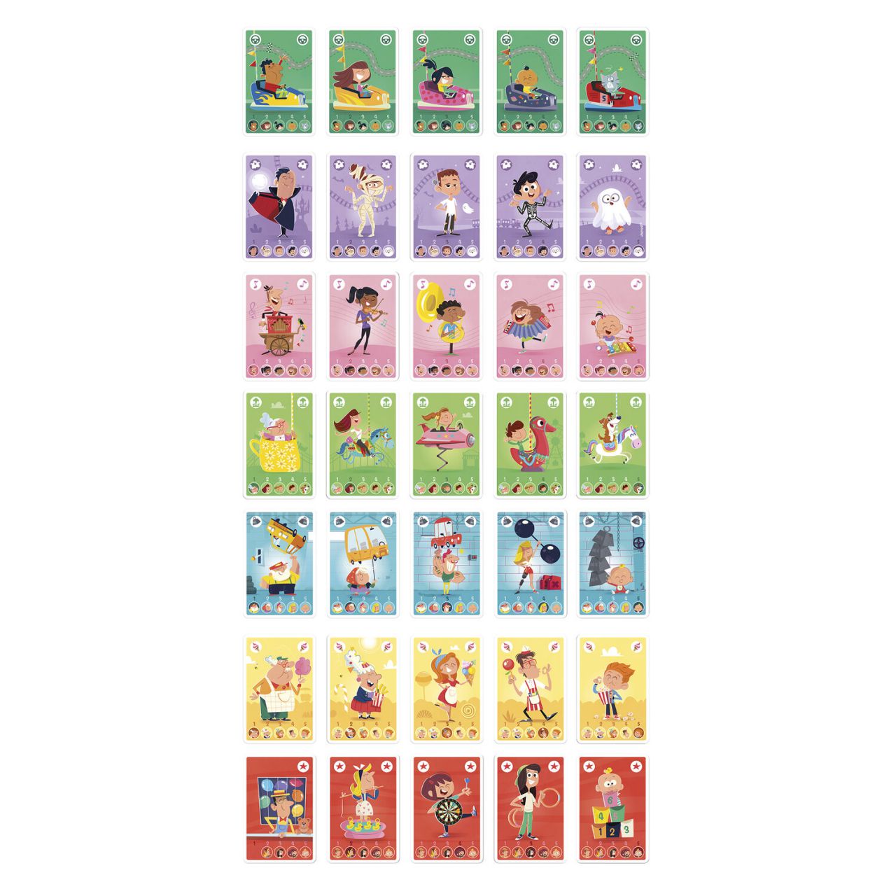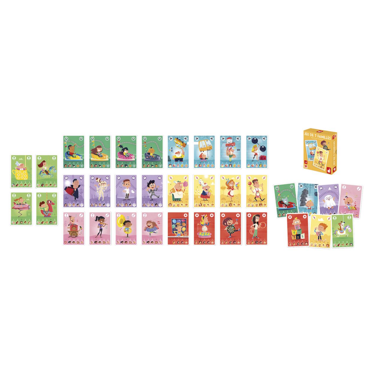 Met dit 7 Families-spel voor kinderen vanaf 4 jaar ontdekken ze kleurrijke personages: muzikanten, kampioenen in behendigheidsspellen, snoepverkopers...