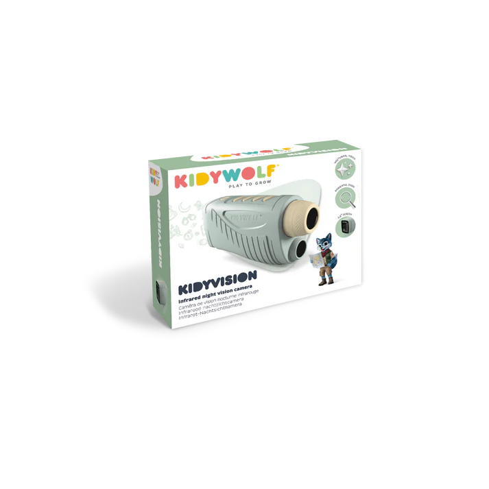 De Kidywolf KIDYVISION biedt infraroodzicht tot 70 meter, waardoor kinderen de natuur kunnen observeren, foto's en video's kunnen maken en nieuwe zintuiglijke avonturen kunnen beleven. Het intuïtieve en compacte ontwerp stimuleert nieuwsgierigheid, aandacht en onafhankelijkheid – dag en nacht.