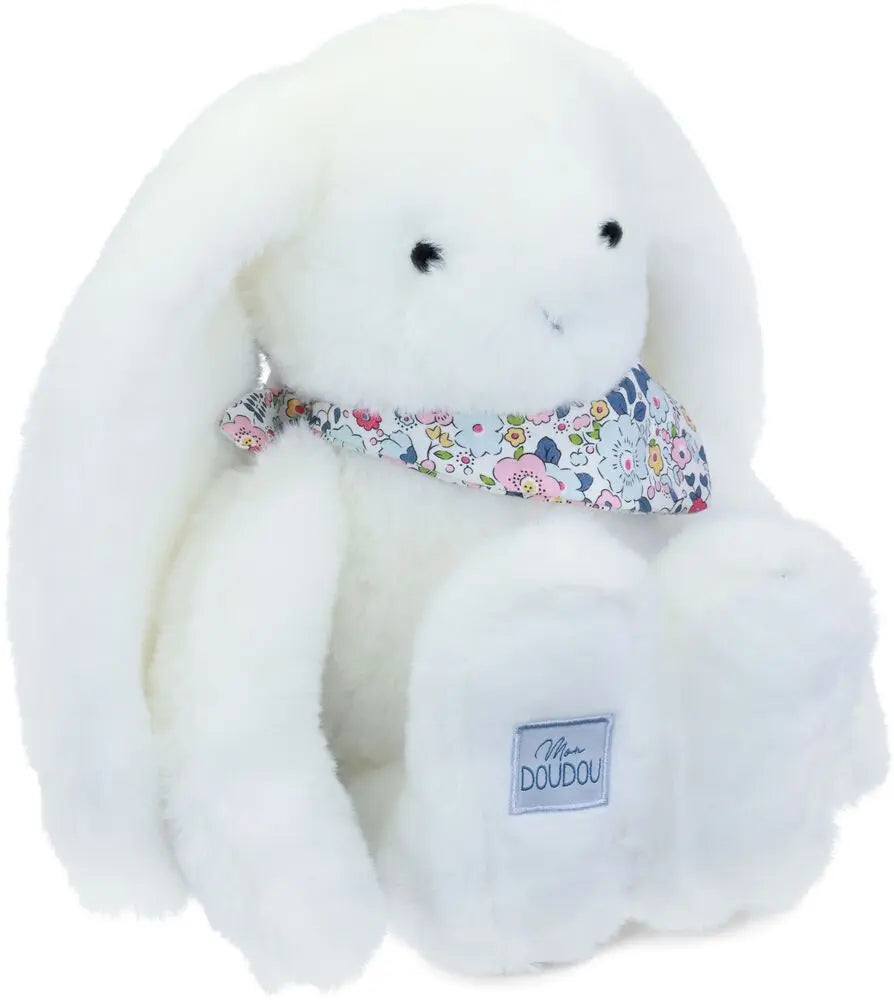 Het witte Fleurette Konijn van Doudou et Compagnie belichaamt puurheid en tederheid. De smetteloze vacht en bloemenbandana zorgen voor een elegante en tijdloze touch, perfect om een zachtaardige metgezel te bieden vanaf de geboorte.