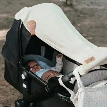 Een kinderwagen is een belangrijke aankoop als er een baby komt en toch zien we vaak dat er tetra luiers of dekens aan worden bevestigd met ongeschikte systemen zoals wasknijpers of haarklemmen.