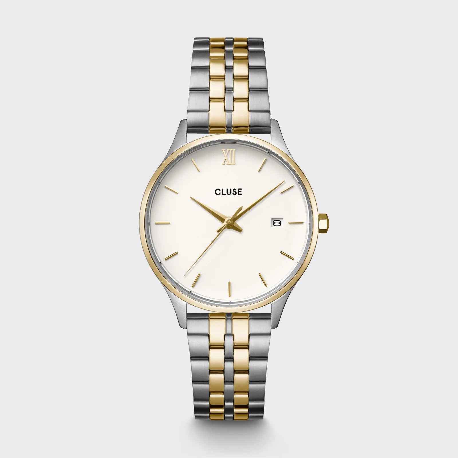 Minuit Date Horloge Staal - Kokosmelk - Tweekleurig