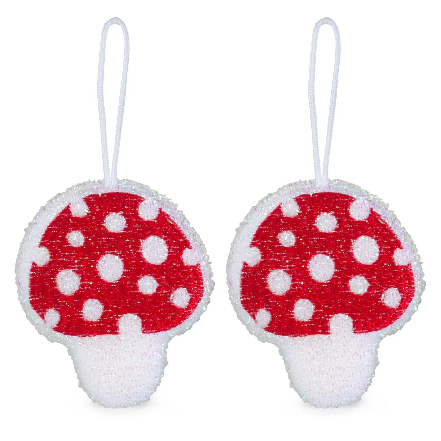 Set van twee mooie Kikkerland paddenstoelvormige schrobsponsjes.
