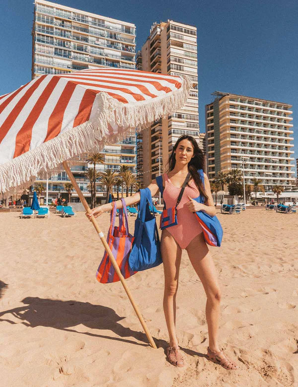 De Notabag Red Purple Stripes zijn een kleurenfestival ๐. Met zijn ultra dynamische rode en paarse strepen straalt hij een gedurfde en artistieke stijl uit ๐๏ธ. En net zo praktisch als de andere Notabags!