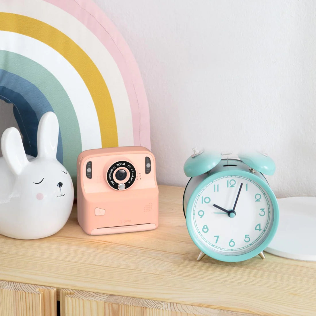Het speelse ontwerp, dat doet denken aan de beroemde Polaroid-camera's, voegt een vleugje stijl toe aan elke foto. Verkrijgbaar in roze en blauw, de perfecte metgezel om van elk moment een boeiend visueel avontuur te maken.