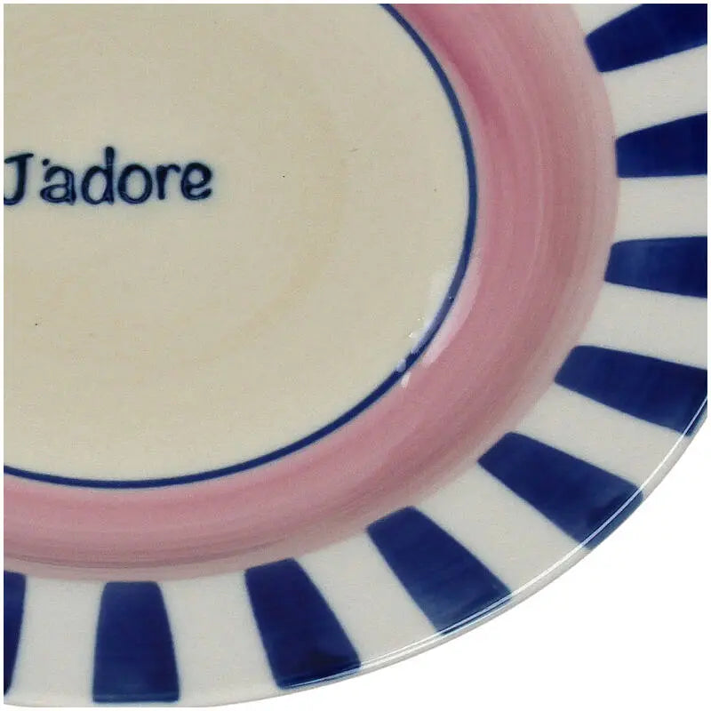 Voeg een vleugje elegantie en vrolijkheid toe aan uw maaltijden met dit eigentijdse aardewerken bord. De kleurrijke strepen en het "I love it"-motief zijn een echte blikvanger en brengen een vrolijke noot aan tafel, of het nu gaat om een familiediner of een maaltijd met vrienden.
