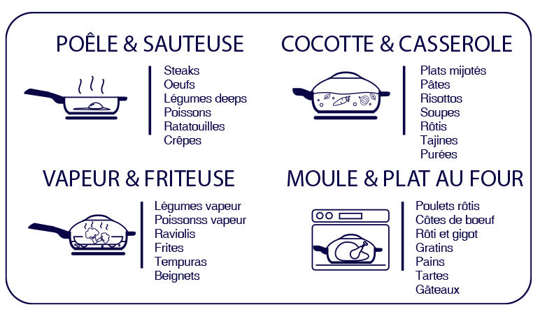 Sauteuse, braadpan, stomer, frituurpan, ovenschotel, gebraden kip, deze unieke pan is zeker het meesterwerk van het merk. Het is een echte "fait-tout", ovenbestendig en compatibel met alle branders, zelfs inductie.