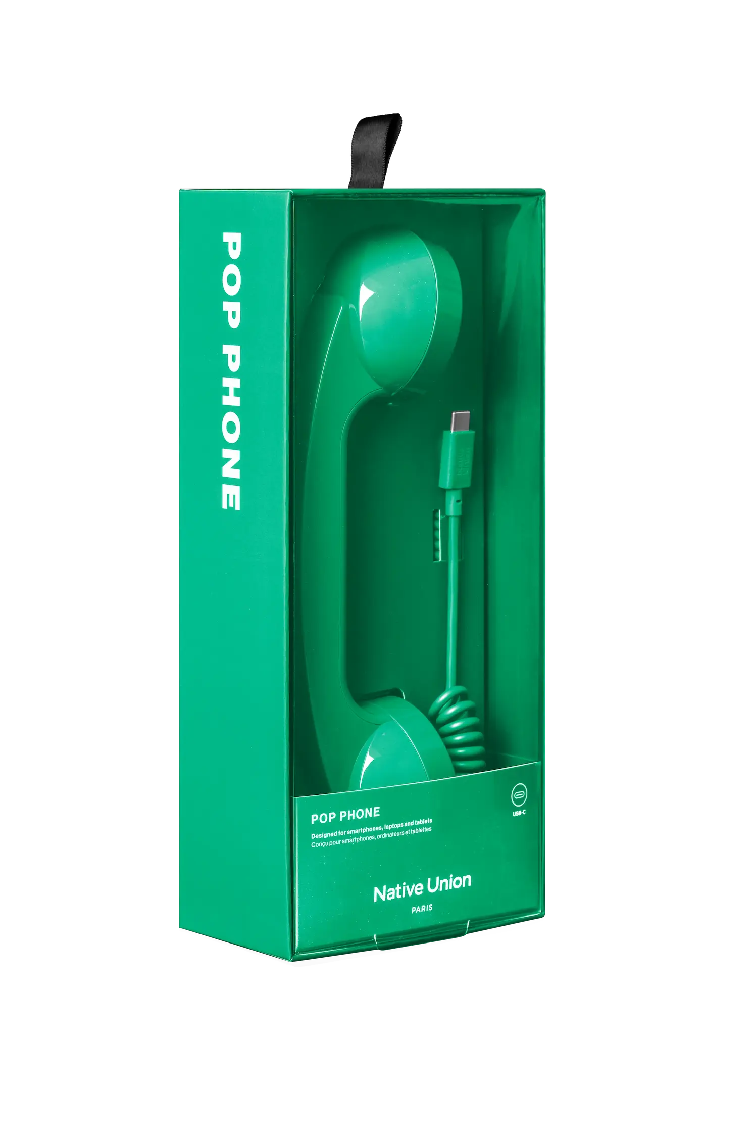 Met zijn hoogwaardige microfoon en heldere, heldere luidspreker verandert de Pop-Phone elk gesprek in een soepel en plezierig gesprek. Het ergonomische ontwerp en de aanraakgevoelige knop voor beantwoorden/beëindigen roepen de nostalgie van een echte handset op, maar bieden tegelijkertijd modern gemak.